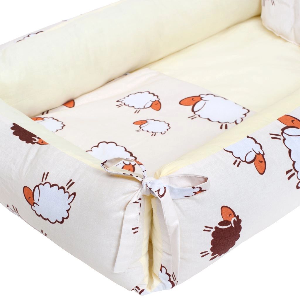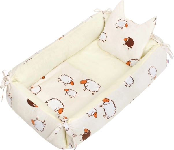 Le cocon multifonction NEW BABY au motif moutons beige offre à votre bébé confort et sécurité dès les premiers jours. Sa conception réversible permet d’alterner le look et l’usage selon les besoins, tandis que les rebords moelleux aident à maintenir l’enfant en position stable et empêchent qu’il ne roule hors du cocon.