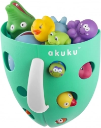 Le panier gris pratique pour jouets de bain AKUKU aide à garder l’ordre autour de la baignoire et de la douche. Grâce au fond et aux parois perforés, l’eau s’écoule rapidement et les jouets comme les accessoires sèchent facilement. La poignée solide facilite le transport et les ventouses permettent une fixation sûre sur une surface lisse sans perçage.