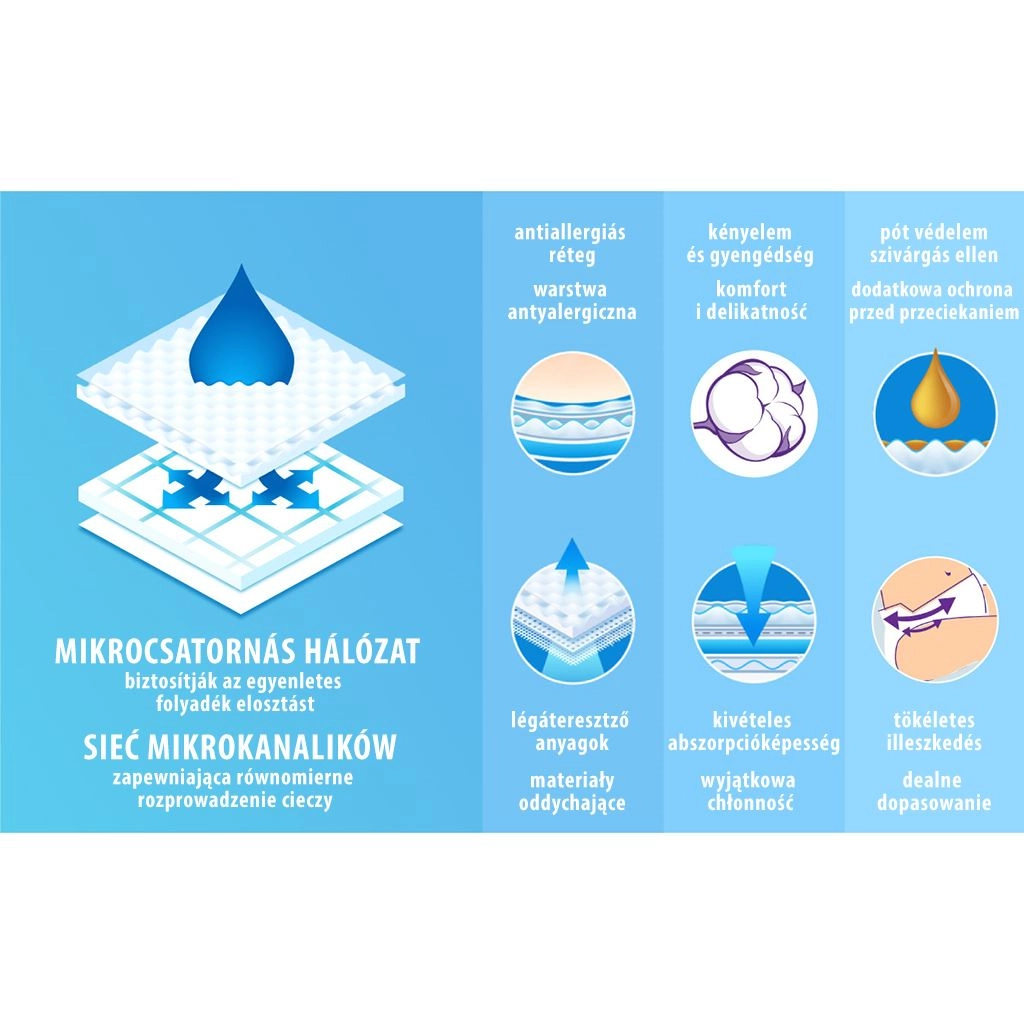 La couche intérieure 3D ultra douce et la large bande ventrale souple garantissent un port confortable même lors d’une utilisation prolongée. La fermeture scratch 3D et les manchons élastiques assurent une adhérence parfaite et une liberté de mouvement, tandis que les volants anti-fuites spécialement doux protègent même les enfants très actifs.