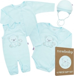 Pratique ensemble 4 pièces dans un emballage écologique, idéal comme charmant cadeau de naissance.