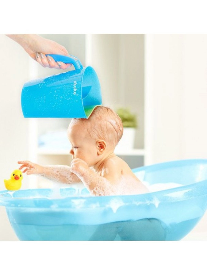Le pratique rinçoir pour cheveux pour enfants AKUKU facilite le bain sans larmes. Grâce à son rebord souple et élastique, l’eau ne coule pas dans les yeux, la double chambre assure un rinçage minutieux et la poignée ergonomique permet un versement confortable. Convient dès la naissance, sans BPA.