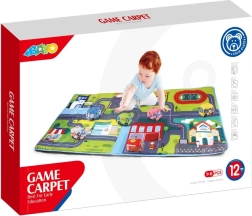 Découvrez le tapis de jeu BAYO à motif de ville, qui offrira aux enfants des heures de jeu créatif. Il comprend des routes dessinées, des feux tricolores, un rond-point et des bâtiments, ainsi que 6 petites voitures coussins douces pour jouer immédiatement. Le tapis protège du froid du sol, est adapté dès 12 mois et mesure 80 × 158 cm.