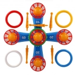 Ce jeu amusant est idéal pour les plus petits enfants. Il comprend une croix avec cinq pointes sur lesquelles les enfants lancent des anneaux en plastique colorés dans le but de gagner des points. Chaque lancer réussi, avec un anneau sur une pointe, rapporte des points, encourageant la compétitivité et la précision. La deuxième variante du jeu fonctionne sur le même principe, mais les pointes ont été remplacées par des paniers pour les balles, apportant un nouveau défi.
