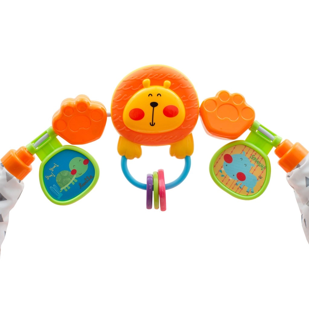- Piano amovible (3 touches), arceau avec jouets rotatifs et perles