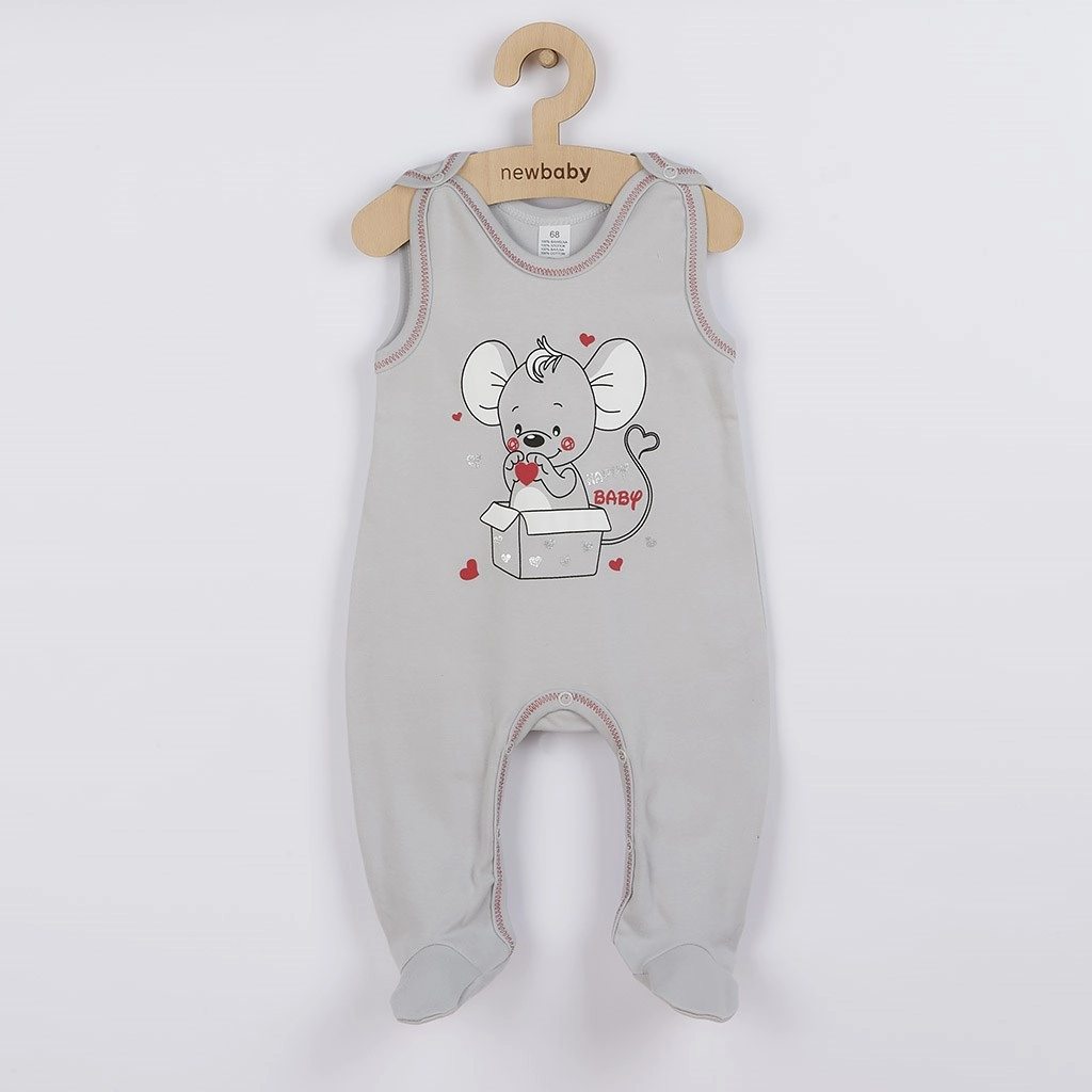 La grenouillère est ornée de finitions contrastées et d’une grande image de souris, le gilet est uni et se ferme sur toute la longueur. La qualité de fabrication répond au standard de la marque tchèque New Baby et la collection Mouse séduit par son design épuré et intemporel en gris neutre.