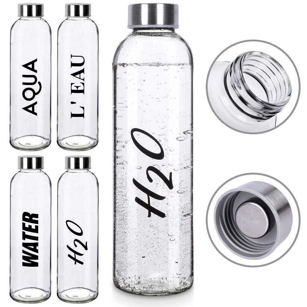 Cette bouteille en verre stylée de 700 ml est un excellent choix pour boire sainement et durablement tout au long de la journée. Le verre transparent de qualité est complété par une impression noire et un bouchon métallique avec joint en silicone, assurant une étanchéité fiable lors du transport dans un sac ou un sac à dos.