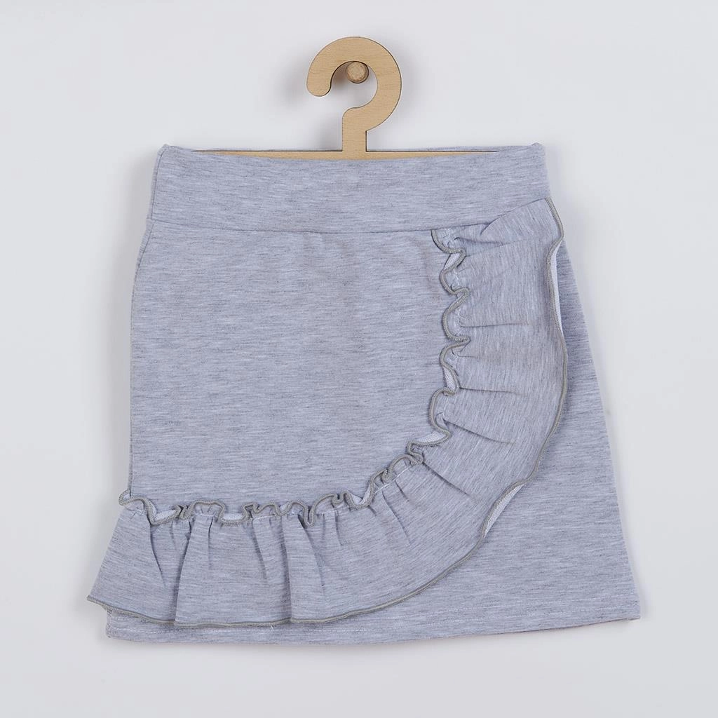 Adorable ensemble 2 pièces pour fillettes New Baby Butterflies qui allie confort et style au quotidien. Un t-shirt en coton tout doux à manches courtes froncées avec motif papillons est associé à une jupe gris chiné à volant. La fermeture par pressions à l’épaule facilite l’habillage, tandis que la large taille élastique de la jupe ne comprime pas le petit ventre.