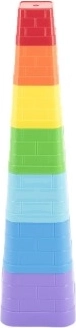 La tour empilable colorée Technok Kubus en cubes plastiques solides développe la motricité fine, l’imagination spatiale et la patience. Elle comprend 7 pièces carrées qui s’emboîtent parfaitement. Les enfants s’amusent à la maison, dans le sable ou dans l’eau. Assemblage facile, apprentissage des couleurs et des tailles, pyramide stable jusqu’à 38 cm de haut et conception sûre dès 12 mois.