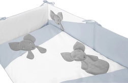 Les tons bleus apaisants et le motif adorable de petite souris s’adaptent à la plupart des chambres d’enfants. Le tour de lit au rembourrage moelleux améliore la sécurité dans le lit et tient fermement grâce à ses liens. Les fermetures éclair de sécurité sans tirettes et l’absence de boutons ou de pièces métalliques minimisent le risque de petits éléments détachables.