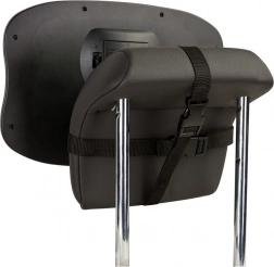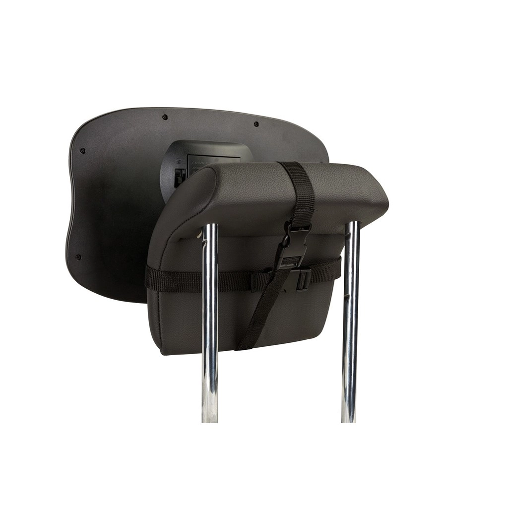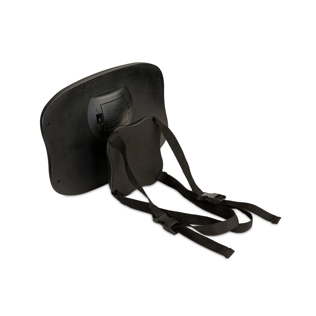 Des sangles réglables avec boucles permettent une installation rapide sur la plupart des appuie-têtes et garantissent une tenue ferme sans vibrations.