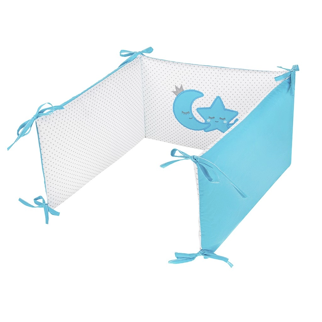Un design assorti en turquoise et blanc avec des applications de lune et d’étoiles favorise une ambiance agréable et apaisante pour un endormissement plus facile.