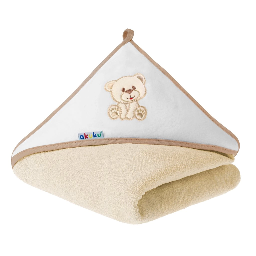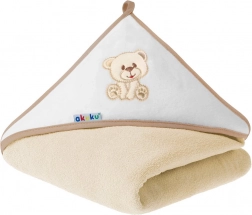 La serviette à capuche pour enfant AKUKU, douce et moelleuse, avec un adorable motif d’ourson, offre un confort maximal après le bain. Face intérieure 100 % coton douce pour les peaux sensibles, tandis que la couche extérieure en polaire tient agréablement chaud. Format pratique 100 × 100 cm et capuche pour un enveloppement rapide après le bain.