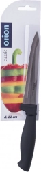 Couteau de cuisine compact et polyvalent pour un usage quotidien. La lame en acier inoxydable conserve son tranchant durablement avec un entretien approprié, tandis que le manche en plastique résistant de couleur noire assure une prise en main stable sans glisser. Excellent choix pour couper, hacher et émincer finement.