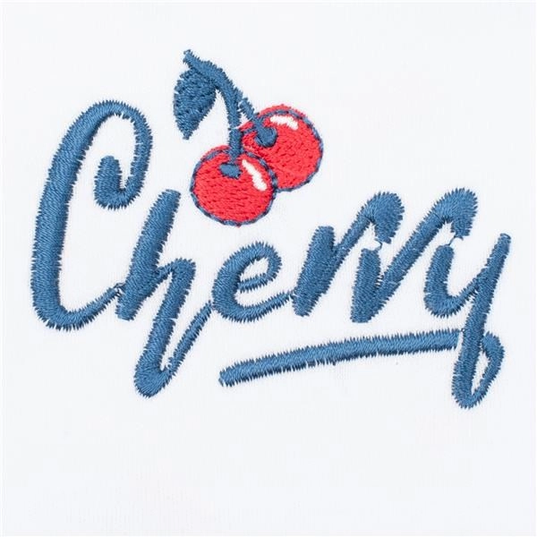 Écusson avec petites cerises (doublé), partie inférieure avec imprimé intégral de cerises, bordures colorées