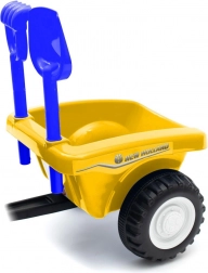 Elle comprend une remorque amovible avec une pelle et un râteau, pour que le petit jardinier puisse transporter du sable ou des bricoles. Le siège confortable avec dossier haut favorise une bonne posture et le confort même lors de jeux prolongés. Les effets sonores sous le volant (klaxon, bruit de moteur) agrémentent chaque trajet.