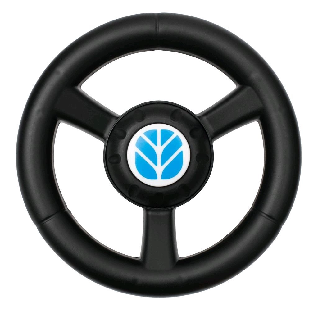Le volant à trois branches avec klaxon et bruit de moteur encourage le jeu actif. Les roues avant pivotantes facilitent les manœuvres.
