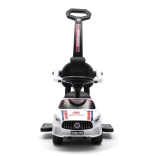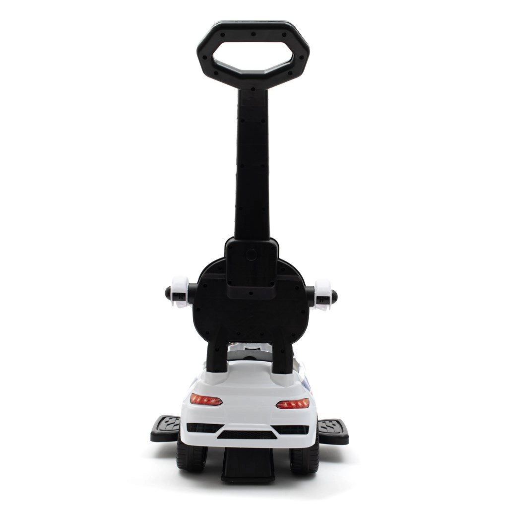 Les parents apprécieront la pratique barre de guidage pour contrôler la direction, les accoudoirs amovibles et les repose-pieds rabattables pour les plus petits. Lorsque le petit conducteur grandit, ces éléments se retirent facilement pour utiliser le véhicule comme une draisienne classique. Sous le siège se trouve un espace de rangement pour les petits trésors.