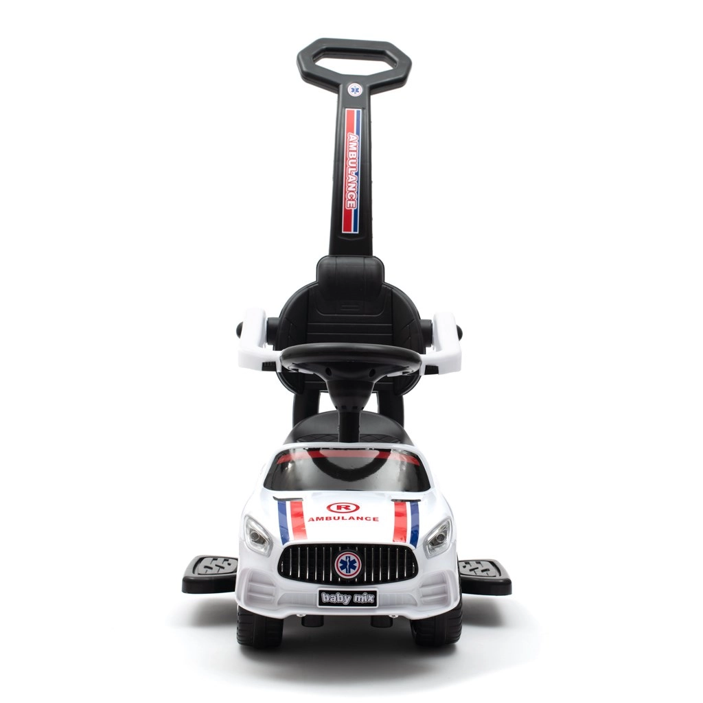 Découvrez la draisienne Baby Mix blanche au style véhicule de secours, qui séduit par ses détails réalistes, son siège profilé confortable et sa construction stable. Les roues avant pivotantes facilitent les manœuvres, tandis que le haut dossier et les éléments de sécurité assurent confort et confiance pendant la conduite.