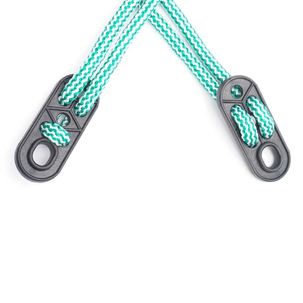 Des cordes certifiées avec régulateurs en plastique permettent d’ajuster rapidement la hauteur idéale de la balançoire selon le point de suspension.