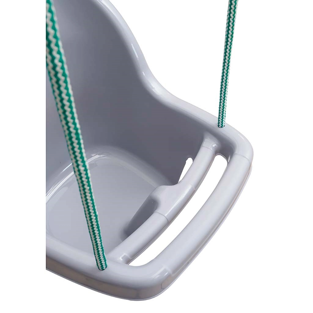 Cette balançoire suspendue grise offre aux enfants un balancement sûr et confortable grâce à son dossier haut et à son élément de sécurité frontal. Sa structure en plastique de qualité résiste aux conditions météo, se nettoie facilement et conserve durablement sa couleur. Grâce aux cordes réglables en longueur, elle s’adapte aisément à différentes hauteurs de suspension en intérieur comme en extérieur.