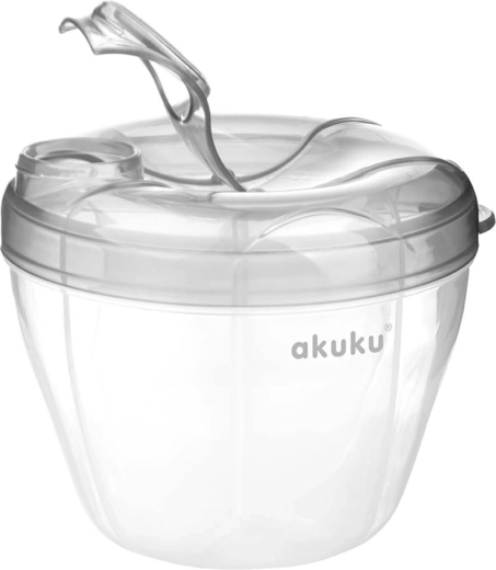 Pratique, le doseur de lait en poudre AUKU de couleur grise avec 4 compartiments séparés facilite la préparation des repas pour bébé à la maison comme en déplacement. Il est sans BPA, convient dès la naissance et passe au lave-vaisselle et au stérilisateur.