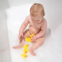 Avec cette adorable famille de canards, chaque bain devient un moment de joie. Le lot comprend 1 grande cane et 3 petits canetons, qui flottent et, grâce à leur orifice, permettent de gicler de l’eau. Leur couleur jaune vive stimule la perception visuelle et la forme adaptée aux petites mains développe la motricité fine.