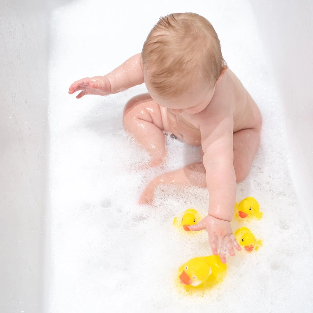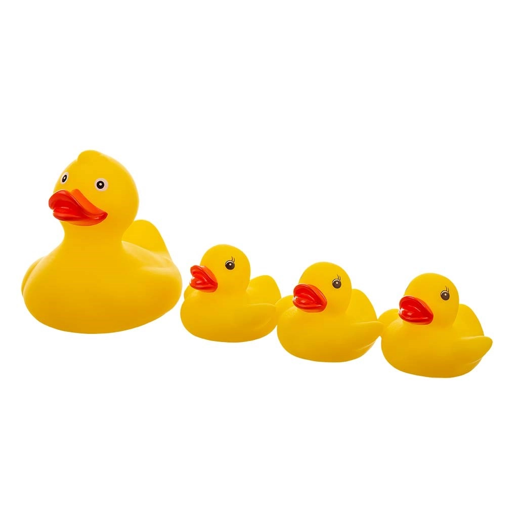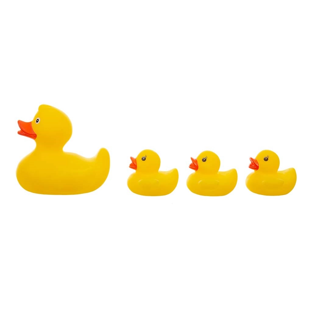 Adorable ensemble de bain pour petits explorateurs : une grande cane et trois canetons pour un plaisir sans fin pendant le bain. Les jouets flottent à la surface, possèdent un orifice pour asperger de l’eau et leurs formes arrondies ainsi que des matériaux sûrs sans BPA garantissent un jeu paisible et sécurisé au milieu des bulles.