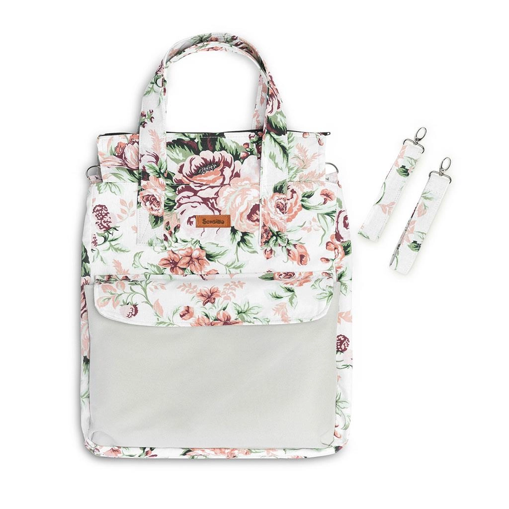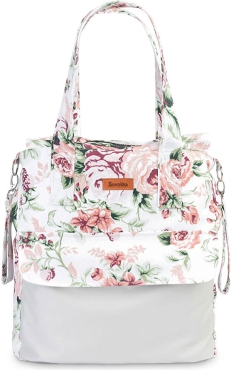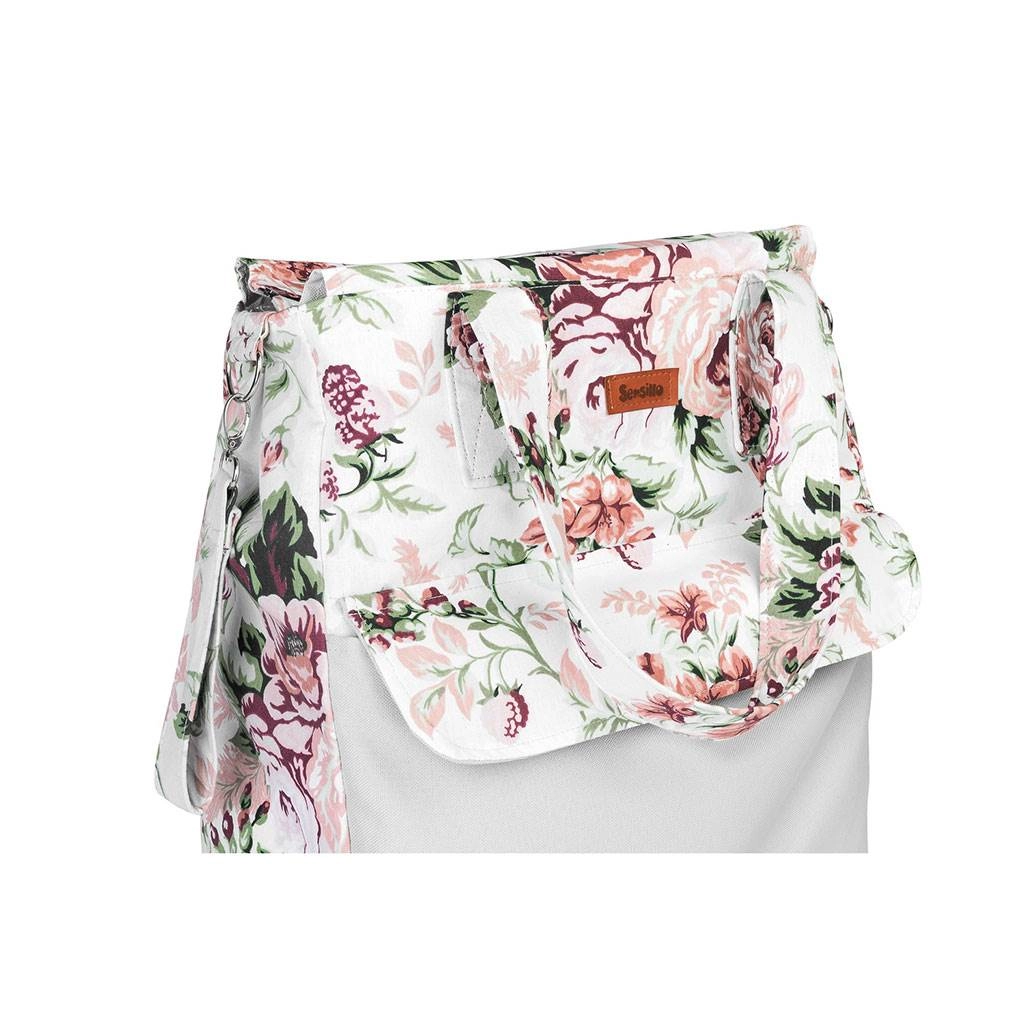 Sac pour mamans Sensillo stylé et spacieux au motif Prairie verte, offrant assez d’espace pour tout le nécessaire lors des promenades, des courses et même pour la maternité. Il dispose d’un grand compartiment principal zippé, d’une poche frontale aimantée pour un accès rapide et de poignées résistantes pour un port confortable ou une fixation sur la poussette.