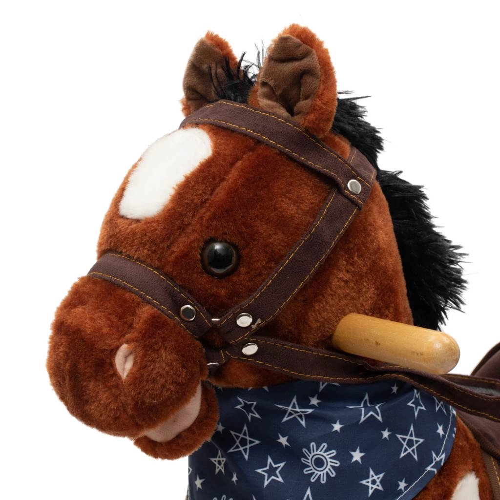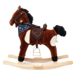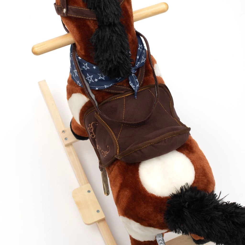 En appuyant sur les boutons situés sur les oreilles, le cheval hennit, émet des sons de galop, chante une chanson de cow-boy et bouge la bouche et la queue. En se balançant, les enfants apprennent à mieux coordonner leurs mouvements et améliorent leur équilibre global ainsi que leur motricité fine et globale. Les patins en bois et les poignées peuvent être facilement dévissés pour un rangement plus pratique.