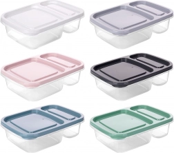 Lunchbox pratique et résistant d’une capacité de 750 ml pour transporter facilement le déjeuner au travail, à l’école ou en voyage. Grâce aux compartiments séparés, les aliments restent isolés, le couvercle solide garantit la fraîcheur et le corps transparent permet de vérifier le contenu d’un coup d’œil. Compatible lave-vaisselle, micro-ondes, réfrigérateur et congélateur.