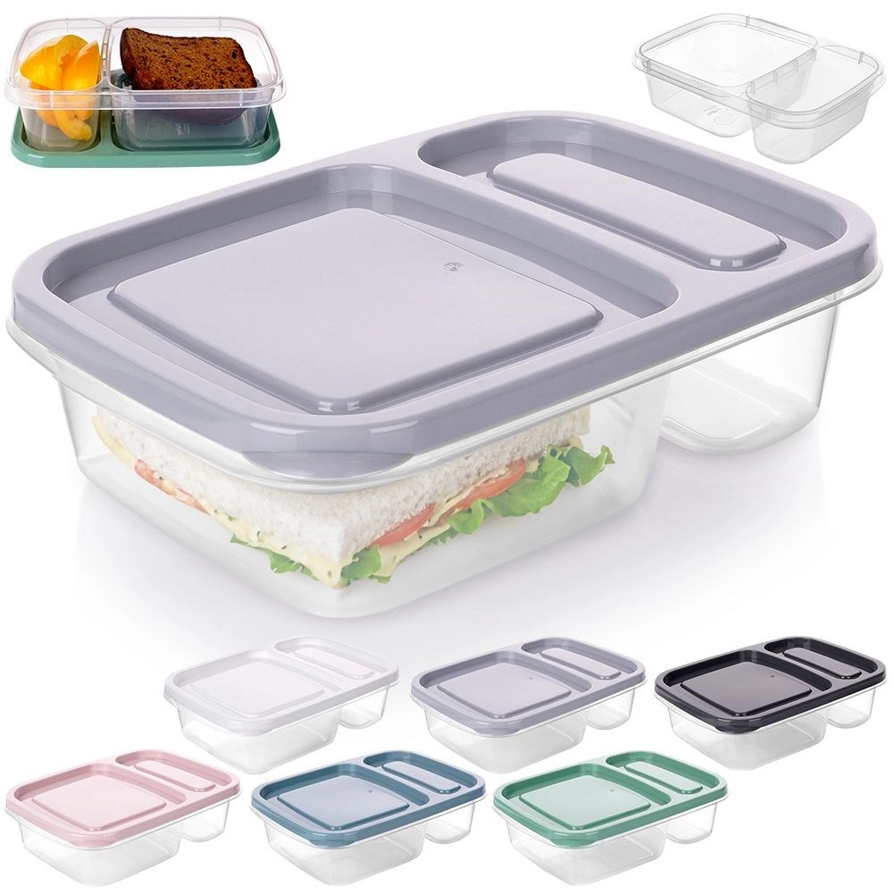 La boîte alimentaire compartimentée de 750 ml est un excellent choix pour un usage quotidien. Deux chambres séparées — une plus grande et une plus petite — maintiennent sandwichs, fruits, légumes ou encas bien séparés, sans mélange des saveurs ni des textures. Les parois transparentes facilitent la visibilité et le couvercle coloré se clipse fermement pour conserver toute la fraîcheur.