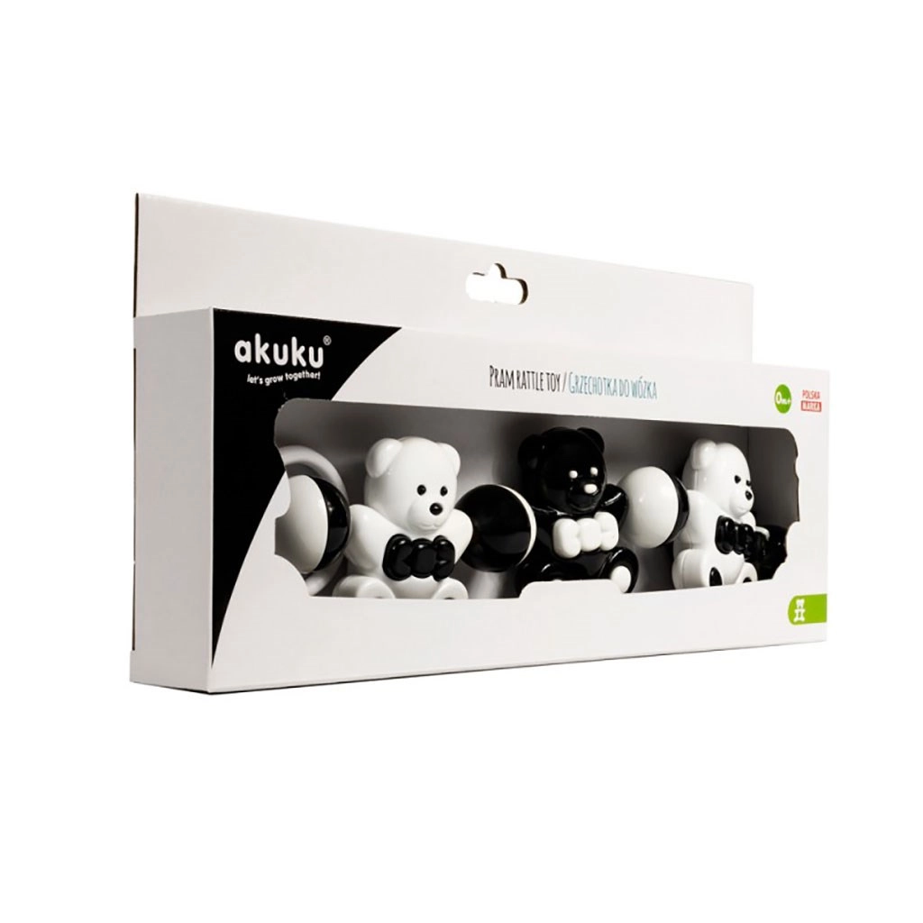 Le hochet noir et blanc Akuku avec oursons est conçu pour les tout-petits et les aide à développer la vue, l’ouïe et la motricité. Les couleurs contrastées attirent l’attention de bébé, le doux cliquetis l’apaise et stimule les sens. Le jouet est léger, agréable au toucher et facile à maintenir propre.