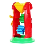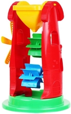 Encouragez la créativité de vos enfants avec ce moulin coloré pour le sable et l'eau. Ce moulin fonctionnel permet de verser du sable ou de l'eau dans la partie supérieure et de regarder les roues tourner, ce qui est un grand amusement pour les enfants.