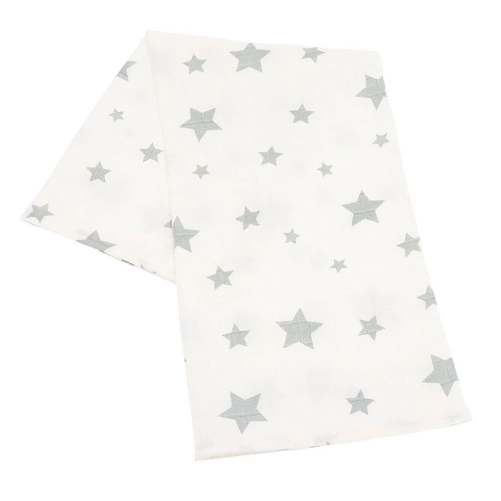 Design aux motifs intemporels – pois gris et étoiles grises sur fond blanc – convient aux filles comme aux garçons. Les serviettes s’utilisent à la maison comme en déplacement : comme serviette après le bain, essuie-mains, bavoir, pare-soleil pour poussette ou comme linge d’épaule pour faire roter bébé.