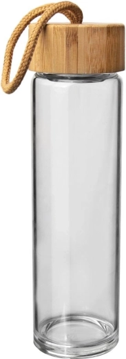 Cette bouteille élégante allie design épuré et praticité au quotidien. Le verre borosilicaté est léger, solide et résistant aux chocs thermiques, pour savourer eau, jus, limonade ou thé chaud. Le couvercle en bambou naturel avec anse solide facilite le transport et confère un look écologique à la bouteille.