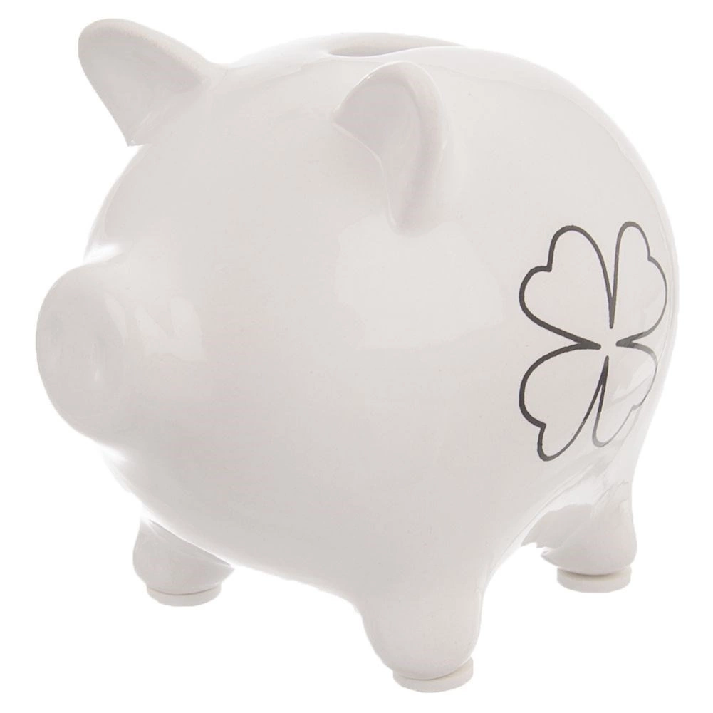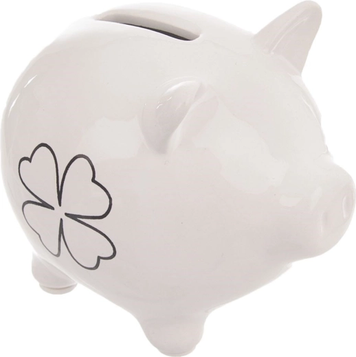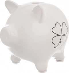 Une élégante tirelire blanche en céramique en forme de cochon, ornée d’un motif de feuille de trèfle, vous apprend à épargner tout en décorant votre intérieur. Fabriquée en céramique de qualité avec une glaze brillante. Elle ne possède pas d’ouverture pour retirer les pièces – l’argent ne peut être sorti qu’en la cassant, ce qui favorise une épargne disciplinée. Une excellente idée cadeau pour enfants et adultes.