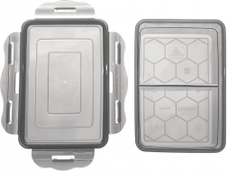 Boîte alimentaire compartimentée pratique et résistante d’une capacité de 500 ml avec joint en silicone et quatre clips pour une fermeture sûre. Deux compartiments séparés maintiennent les saveurs et les odeurs bien distinctes. Compatible micro-ondes (sans couvercle), lave-vaisselle, réfrigérateur et congélateur. Sans BPA et en plastique gris foncé transparent pour un contrôle rapide du contenu.