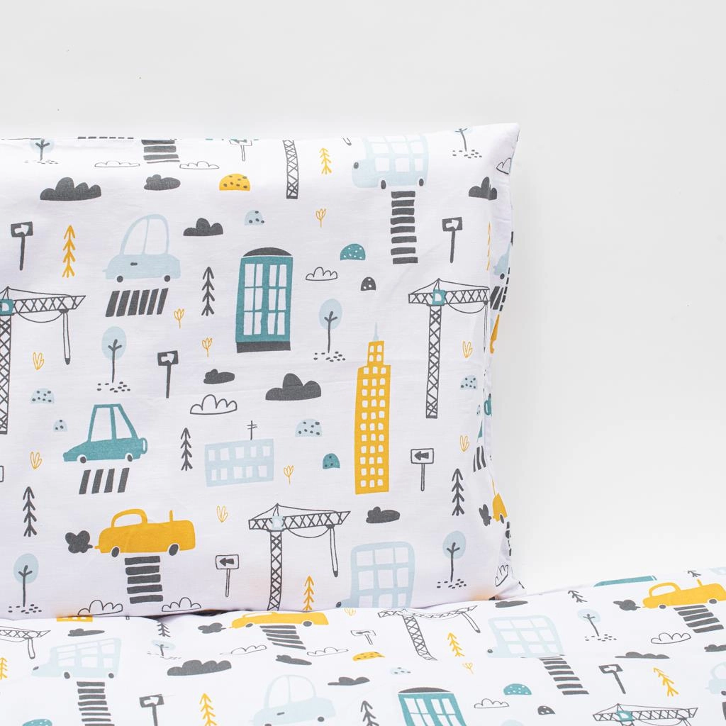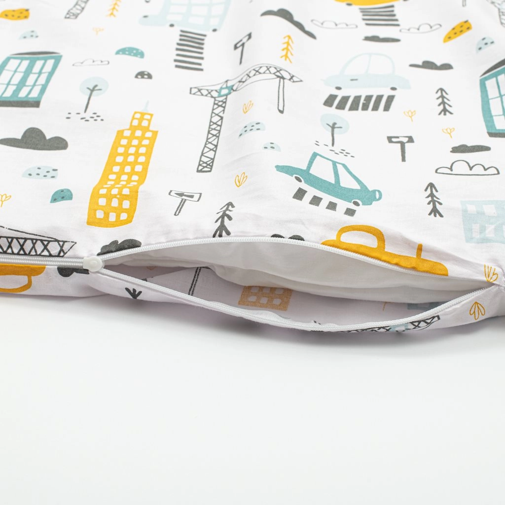 Découvrez le confort et la sécurité offerts à votre bébé par la parure de lit 3 pièces NEW BABY avec motif ville dans une teinte moutarde tendance. L’ensemble est confectionné en coton 100 %, agréable au toucher, respirant et doux pour la peau sensible des enfants. La conception pratique avec fermetures zippées sûres sans curseurs pendants et le tour de lit moelleux pour la protection dans le berceau font de cet ensemble un excellent choix pour un usage quotidien.