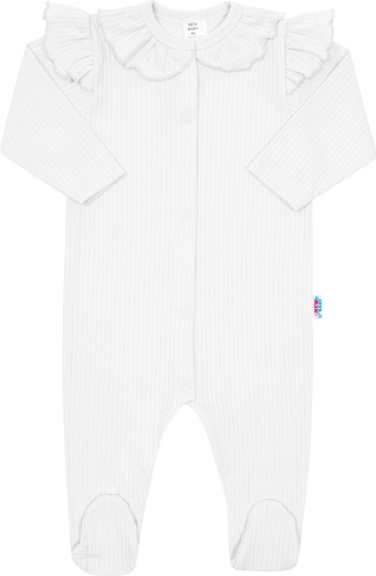 Grenouillère pour bébé confortable et pratique en 100 % coton NEW BABY Stripes, de couleur blanche avec un motif rayé moderne. Grâce à sa fermeture à pressions sur toute la longueur et entre les jambes, l’habillage et le change sont facilités. Le matériau doux et délicat n’irrite pas la peau sensible de bébé et protège efficacement le dos à chaque mouvement.