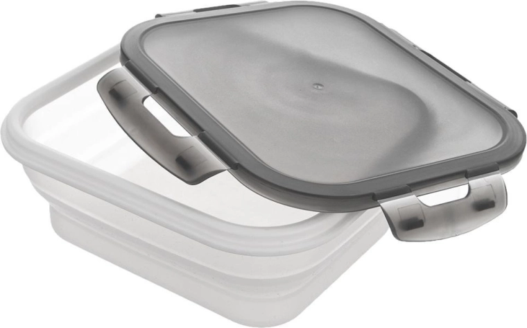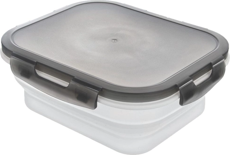 La boîte alimentaire pliable en silicone d’une capacité de 1 litre est une excellente solution pour le stockage quotidien et le transport des repas. Le couvercle avec joint en silicone et quatre clips assure une étanchéité fiable contre les fuites de liquides et les odeurs. Le corps translucide facilite le contrôle du contenu et, grâce à sa compacité, elle prend un minimum de place dans un tiroir, un sac à dos ou un sac à main.