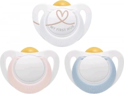 La sucette NUK Star a été conçue pour respecter le besoin naturel de succion du bébé tout en soutenant le développement sain de la cavité buccale. La zone supérieure souple s’adapte délicatement au palais, tandis que la forme inférieure laisse de l’espace aux mouvements naturels de la langue. Grâce à l’anneau pratique en polypropylène de haute qualité, même les plus petites mains peuvent la saisir facilement.