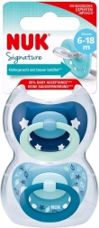 La sucette orthodontique NUK Signature pour enfants de 6–18 mois, au design encore plus aplati, favorise le développement sain de la cavité buccale. Elle est fabriquée en silicone de qualité et en plastique sûr, sans BPA, se nettoie facilement et présente de jolis motifs colorés. L’emballage contient 2 pièces.