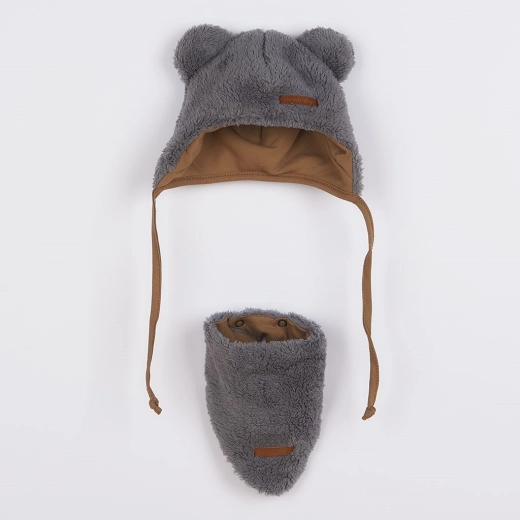 Bonnet d’hiver pour bébé avec bandeau tour de cou NEW BABY Teddy bear, gris