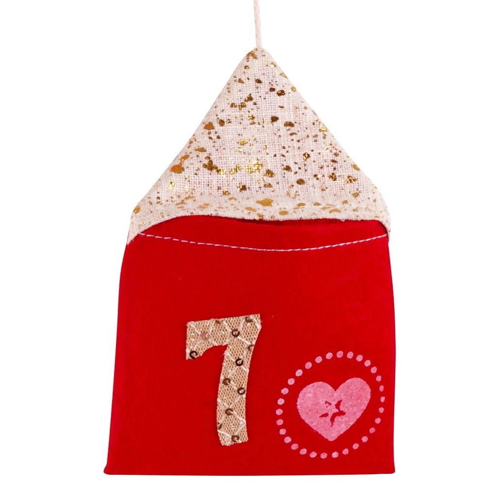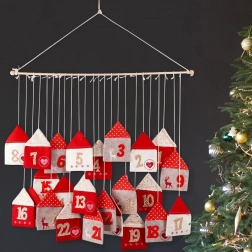 Le calendrier comprend 24 pochettes en tissu en forme de maison (env. 10 × 15,5 cm), dans lesquelles vous pouvez facilement glisser des mini-cadeaux, des missions, des messages ou des friandises. Le feutre robuste garde sa forme, est agréable au toucher et vous permet de l’utiliser chaque année.