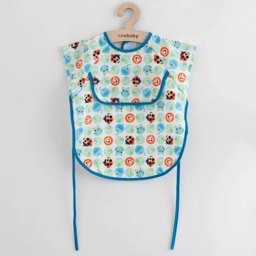 Le bavoir–tablier NEW BABY de couleur bleue est l’accessoire idéal pour l’alimentation quotidienne et les activités créatives. Léger, doux et agréable au toucher, tout en étant résistant et facile à entretenir – en cas de salissure, il suffit de l’essuyer avec un chiffon humide ou de le laver en machine. La poche pratique retient les restes de nourriture et les liquides afin de garder l’environnement et les vêtements aussi propres que possible.