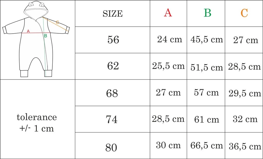 - Pour les tout-petits : taille 56 (0–3 mois)