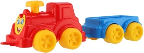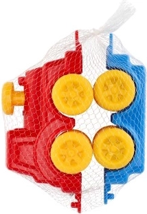 Un wagon détachable est inclus et se rattache facilement — les enfants peuvent ainsi « transporter des cargaisons », développer leur motricité fine, la coordination main-œil et leur imagination. Le jouet convient dès 12 mois et, grâce au matériau plastique, il est également parfait pour le sable.