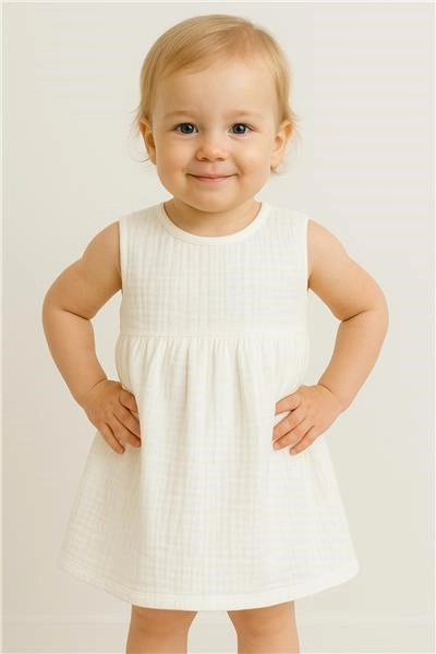 Des robes bébé en mousseline légères et respirantes de la marque New Baby séduisent par leur coupe évasée douce sans manches, leur jupe froncée et leur fermeture pratique par pression au dos. La mousseline 100 % coton est douce, agréable pour la peau de bébé et respire parfaitement, réduisant ainsi le risque de surchauffe. Un choix idéal pour l’été pour les petites coquettes.
