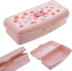 La boîte est fabriquée en plastique de qualité, sans danger pour les aliments, de couleur rose. Le clip solide assure une fermeture fiable et une fraîcheur prolongée des aliments. Le design à motif « YUM YUM » apporte une touche ludique au goûter et aide les enfants à reconnaître facilement leur boîte.