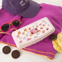 L’imprimé joyeux avec des desserts et l’inscription YUM YUM attire les enfants et les aide à reconnaître facilement leur boîte.